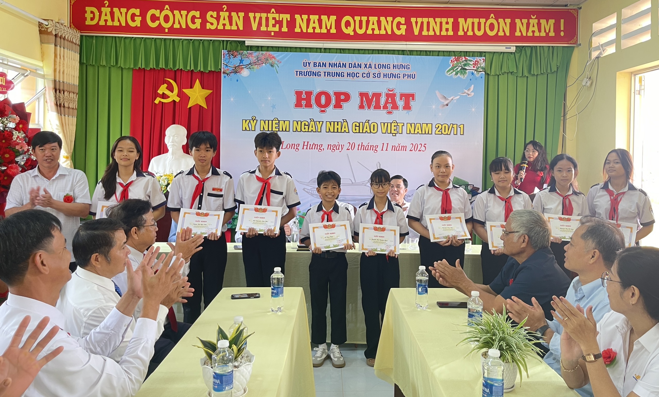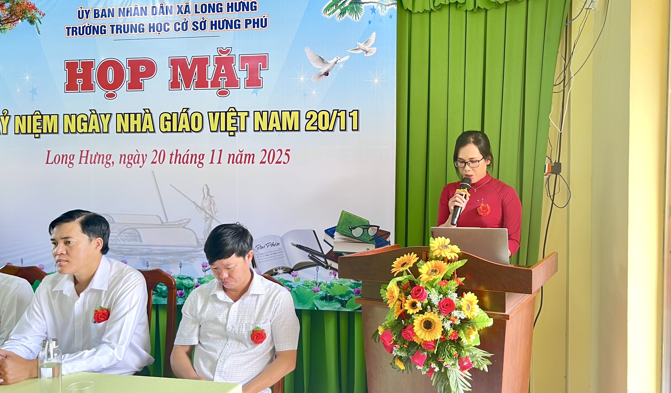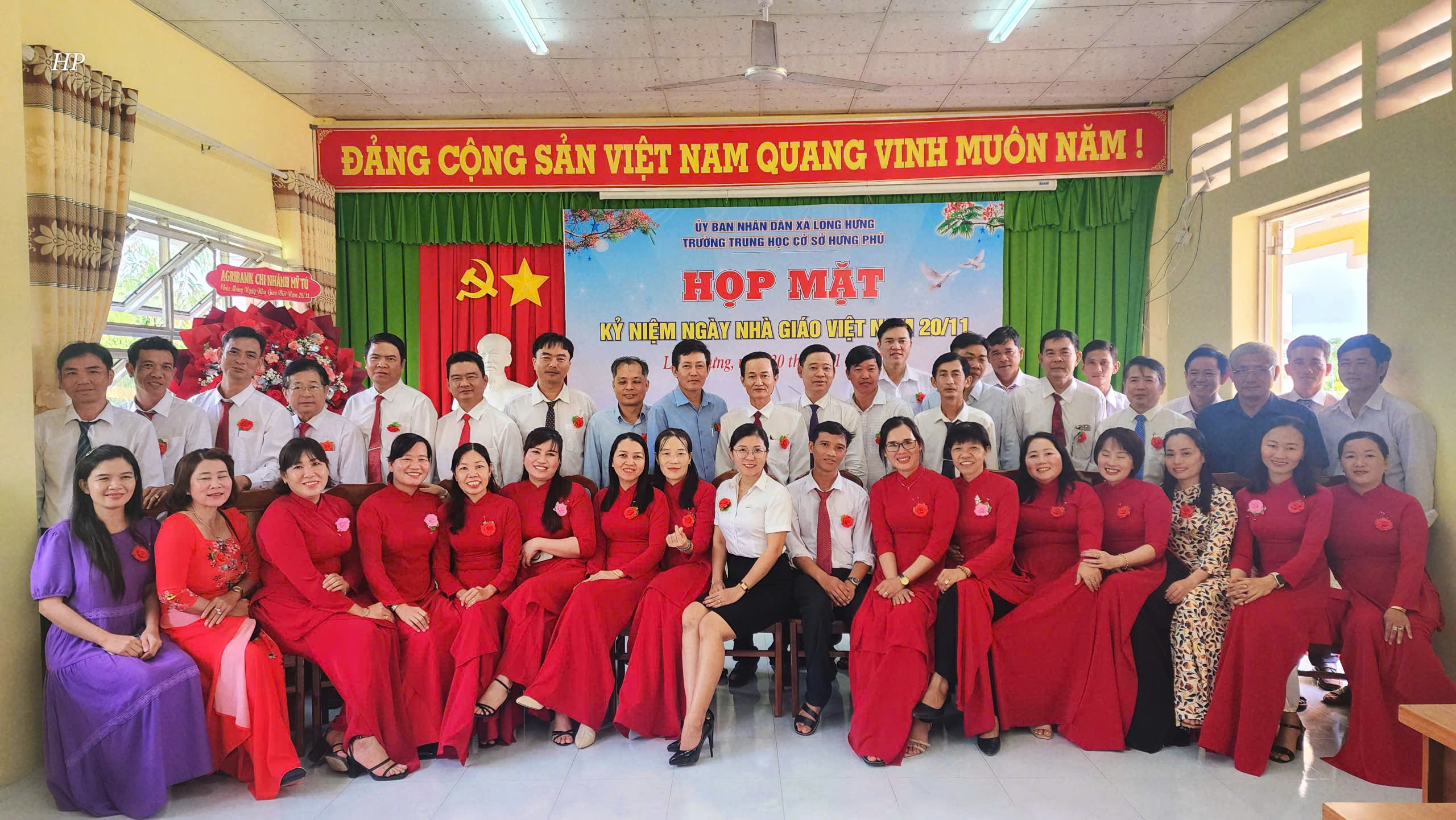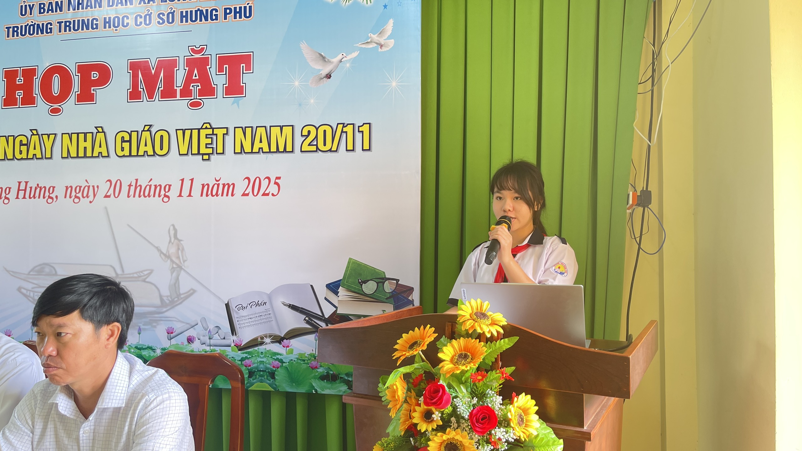 Nhân dịp này, thầy Nguyễn Thanh Phong - Phó Hiệu trưởng nhà trường đã thông qua các quyết định khen thưởng, vinh danh các cá nhân đạt thành tích xuất sắc: Bằng khen Tỉnh ủy, danh hiệu Chiến sĩ thi đua cơ sở. Bên cạnh đó, nhà trường cũng tổng kết và trao thưởng cho các phong trào thi đua của học sinh như: Tuần học tốt, Tiết học tốt, Phiếu học tốt và cuộc thi thiết kế báo tường.</p> <p>Nhiều suất học bổng ý nghĩa từ các mạnh thường quân cũng đã được trao tận tay những học sinh vượt khó, hiếu học, tiếp thêm động lực cho các em trên con đường tri thức.</p> <p>Buổi họp mặt khép lại trong không khí ấm áp bằng những tấm hình lưu niệm, đánh dấu một mùa hiến chương thành công rực rỡ, tạo động lực mới cho thầy và trò trường THCS Hưng Phú trong năm học tiếp theo.</p> <p><strong>Trường THCS Hưng Phú long trọng tổ chức Họp mặt kỷ niệm Ngày Nhà giáo Việt Nam 20/11/2025</strong></p> <p>Hòa chung không khí hân hoan của cả nước hướng về ngày hiến chương các nhà giáo, sáng ngày 20/11/2025, Trường THCS Hưng Phú đã long trọng tổ chức buổi Họp mặt kỷ niệm 43 năm Ngày Nhà giáo Việt Nam (20/11/1982 – 20/11/2025). Buổi lễ là dịp để tri ân, tôn vinh những cống hiến của đội ngũ cán bộ, giáo viên và ôn lại truyền thống " t="" thcs="" thu="" ty="" u="" vinh="" y="" />