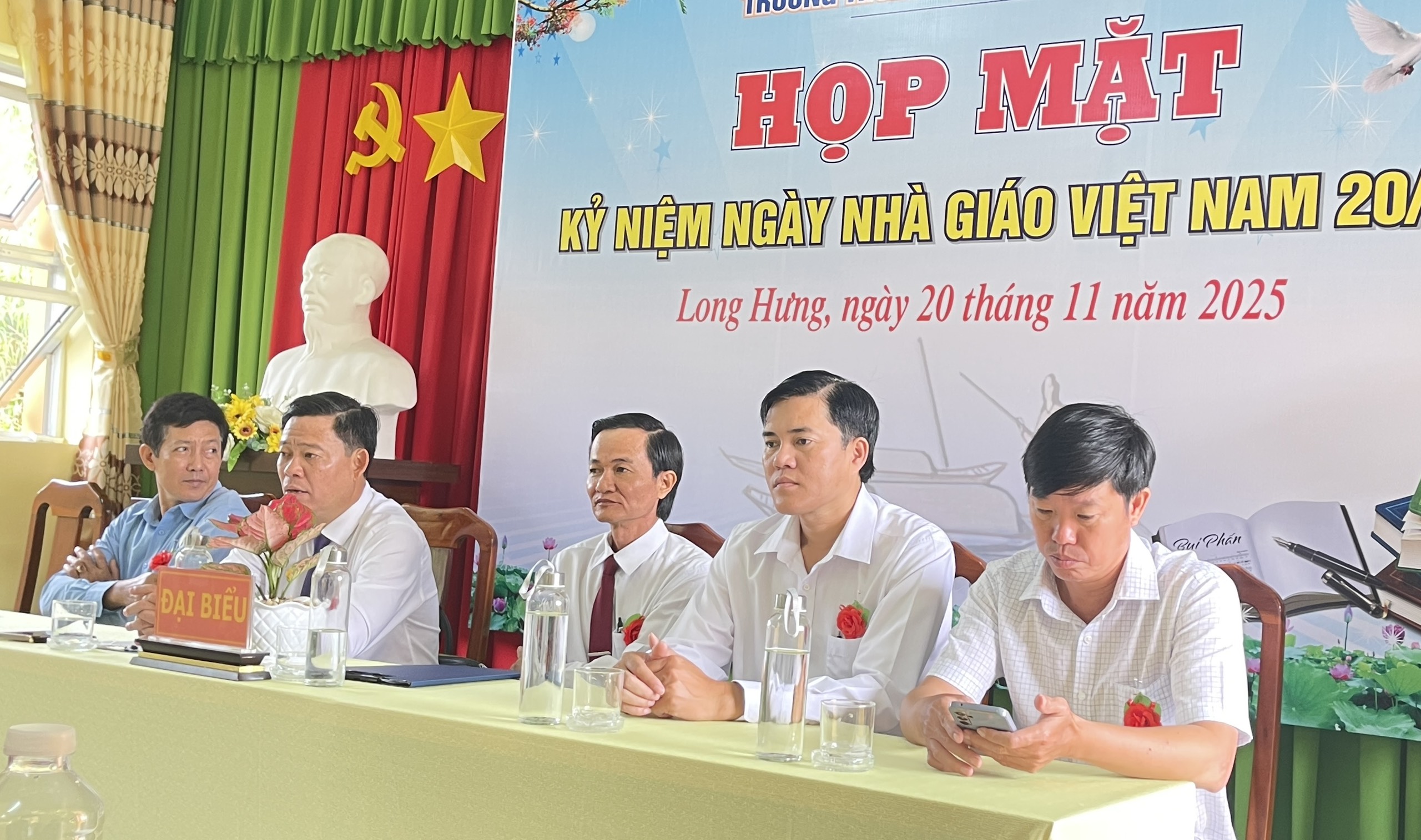 Buổi họp mặt vinh dự đón tiếp sự hiện diện của quý đại biểu, khách quý thể hiện sự quan tâm sát sao đến sự nghiệp giáo dục xã nhà. Về phía lãnh đạo địa phương có đại diện Đảng ủy, UBND, Phòng VH-XH, Công an xã và ông Nguyễn Hồng Châu - Chủ tịch MTTQVN xã Long Hưng.